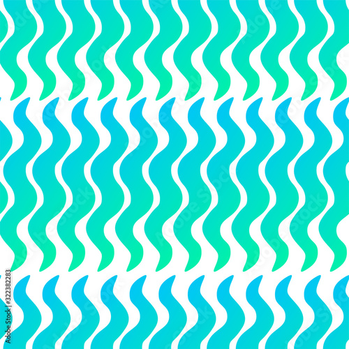 Vector seamless pattern on white background with waves or algae in modern gradient color green and blue. For prints, textile. Green waves stripes for textile prints.
