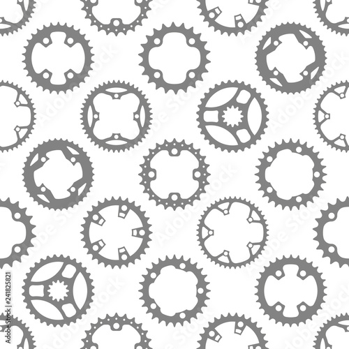 Vector seamless pattern with bike chainrings (chainwheels, sprockets) isolated on white background.