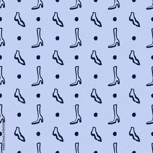 Vector seamless pattern with hand-drawn shoes.Trendy background with fashion boots sketch for fabric design,cards,textile,covers,wrapping paper.Isolated elements on blue background.
