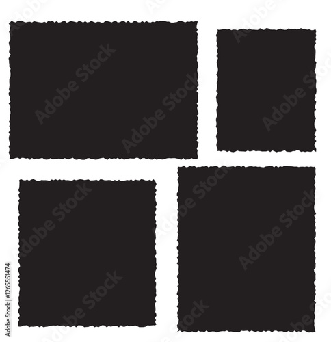 Vector set of black paper frames, grunge strips with jagged edges. Ripped sheets of different geometric form isolated on transparent background. 1176