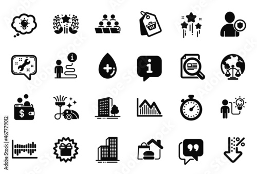 Vector Set of Business icons related to Teamwork, Investment graph and Surprise gift icons. Sale tag, Food delivery and Quote bubble signs. Info bubble, journey path. Teamwork isolated sign. Vector