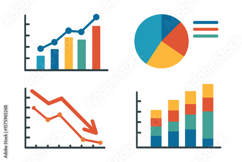 Vector set of business infographic chart elements. Diagrams and graphs for data analytics report. Financial statistics and market visualization. Growth and decline concept.