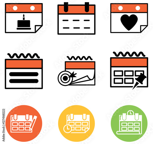Vector set of calendar icons with white background