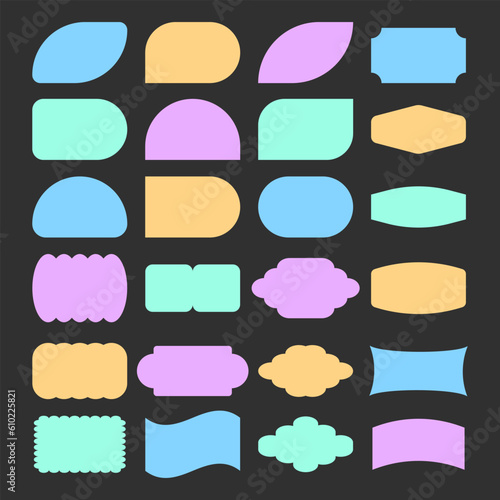 Vector set of Cool minimalistic Badges. Collection of Abstract Geometric Shapes. Y2K Label Graphic Elements.