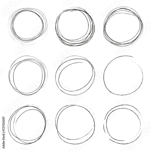 Vector set of hand-drawn circles. Thin line circles. Simple and stylish elements for design, social media and logos.