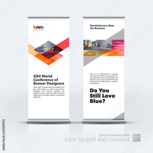 Vector set of modern roll Up Banner stand design with red rhombu
