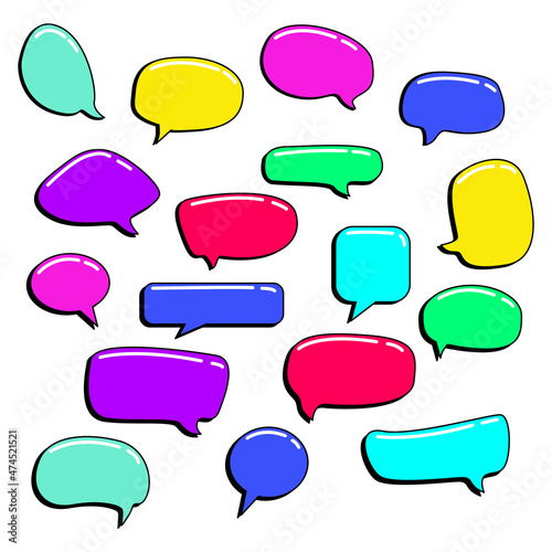Vector set of speech bubbles. Vaporwave in retro style color for use in business, chat, inbox, dialog, message, question, communication, talk, speak, sticker, balloon, thinking