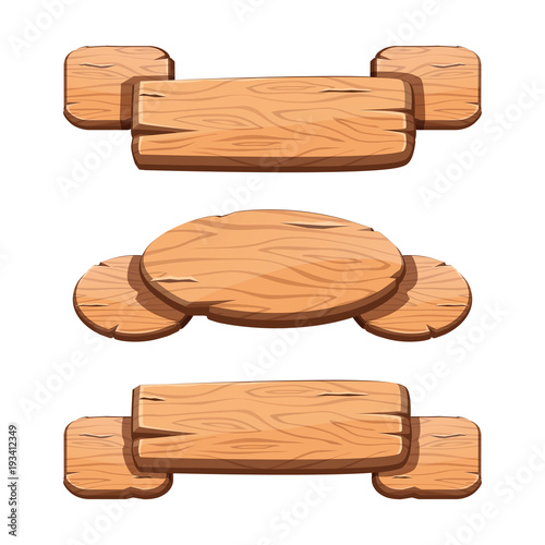 Vector set with cartoon wooden ribbons for game assets, ui development. GUI banners.