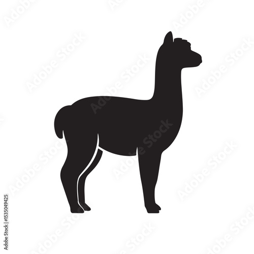 Vector Silhouette of Standing Alpaca in Side View Profile