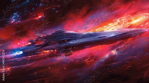 Vector spaceship design with milky way galaxy print on white t shirt for a cosmic inspired look