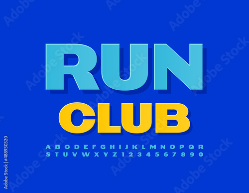 Vector sport banner Run Club. Blue modern Font. Sticker style set of Alphabet Letters and Numbers