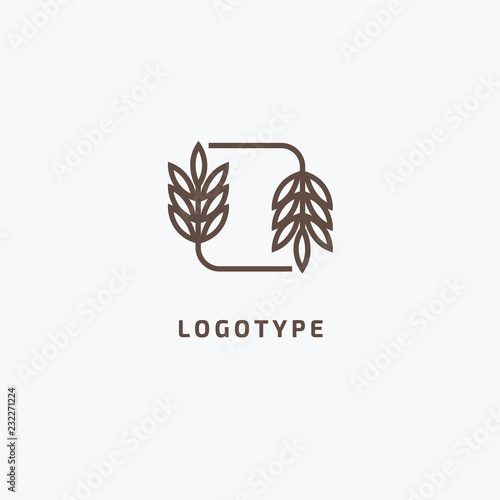 Vector stock logo, abstract nature sign. Illustration design of elegant, premium and royal logotype bakery, bread, agroculture, grain, millet, field, flour. Vector icon of gold ear.