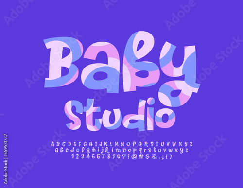 Vector stylish emblem Baby Studio. Modern handwritten Font. Creative Alphabet Letters, Numbers and Symbols