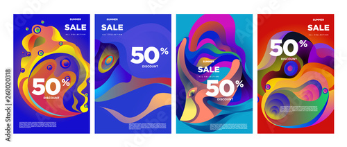 Vector summer sale 50% discount with fluid colorful background. Summer banner, website, poster, and sales promotion background set.