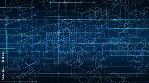 Vector tech abstract background with futuristic lines and transparent cubes. Techno design of future, minimalism
