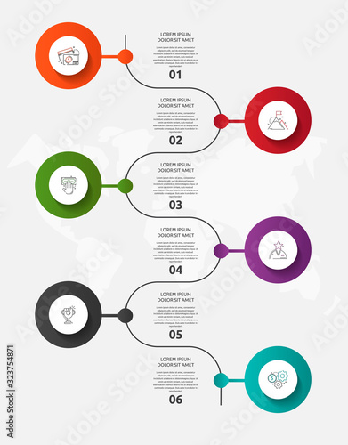 Vector template circle infographics. Business concept with 6 options and parts. Six steps for content, graph, diagrams, slideshow. Path step by step