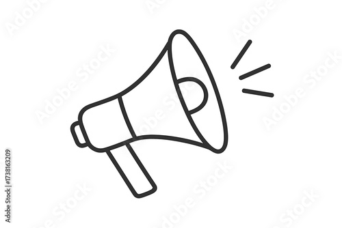 Vector thin line megaphone icon for news, advertising, and communication. Loudspeaker symbol for business presentations or protests. Announcement and alert sound concept.