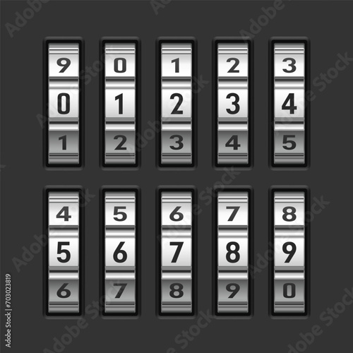 Vector Vertical Metal Rotating Discs With Black Numbers for Combination Lock