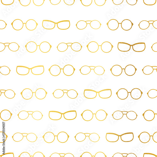 Vector white and gold glasses accessories horizontal borders, stripes seamless pattern. Great for eyewear themed fabric, wallpaper, packaging.