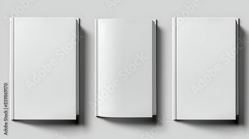 Vector white book mockup set - cover, spread, spine Realistic blank book in hardcover in different angles Top view Applicable for design presentation