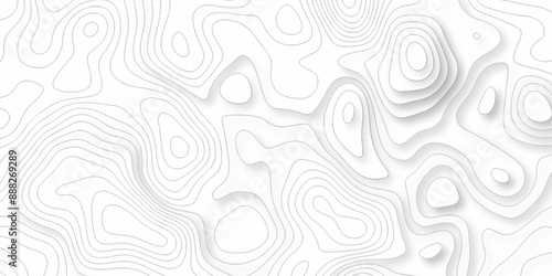 Vector white wave line geography landscape Topo contour map on white background. Geographic mountain relief diagram line wave carve pattern. Topographic world map contour lines map texture.