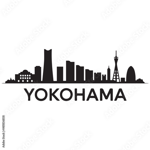 Vector Yokohama skyline. Travel Yokohama famous landmarks. Business and tourism concept for presentation. Vector black silhouette. with white background