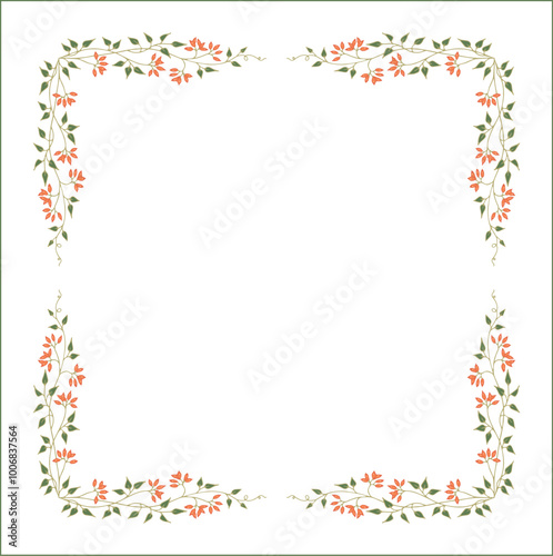 Vegetal green floral frame with pink berries, autumn frame, decorative corners for greeting cards, banners, business cards, invitations, menus. Isolated vector illustration.