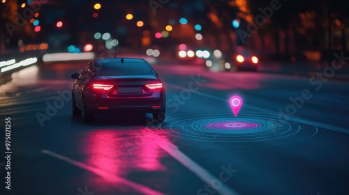 Vehicle with GPS Tracking Signal. AI generated illustration