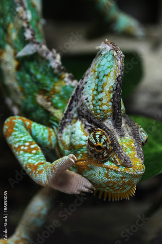 Veiled chameleon (Chamaeleo calyptratus).