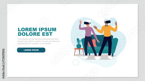 Vektor-Illustration von Menschen mit virtuellen Realität Brillen in ihrem Wohnzimmer - künstliche Intelligenz Konzept