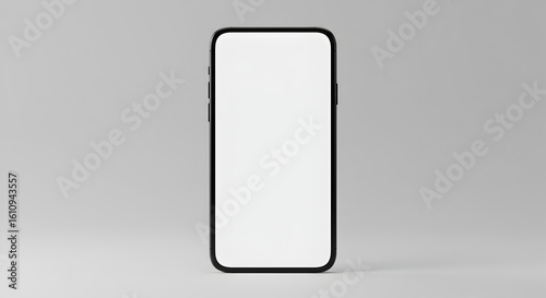 Vertical Black Smartphone Mockup with Blank White Screen on Light Grey Background