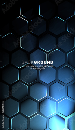 Vertical hexagon background. Gradient color light pattern with dark background technology style. Honeycomb. Vector illustration of light.