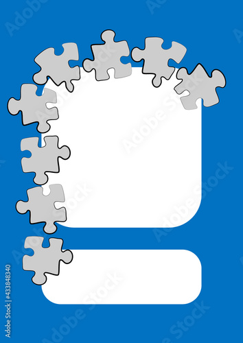 Vertical illustration format A4 - the design of the screen of the phone or tablet for inscriptions and photos, frame with puzzles. Postcard, book cover or notepad, postcard. Minimalism, pastiche