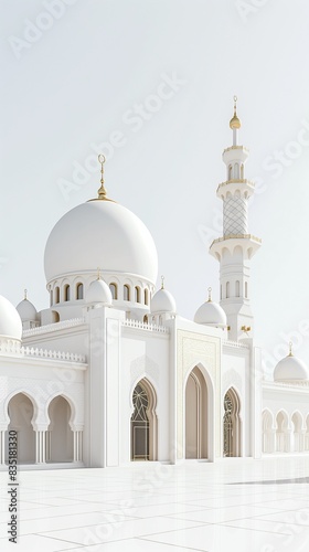 Vertical Image Of A White Mosque Isolated On A White Background.