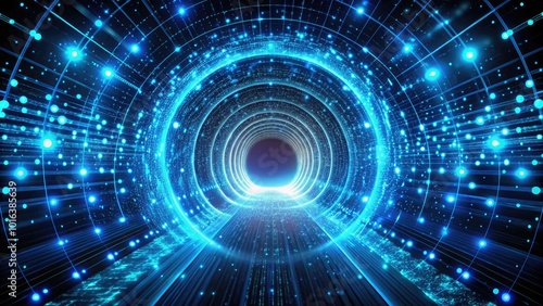 Vertical Video Blue Neon Circle Particles Tunnel Animation for Digital Art