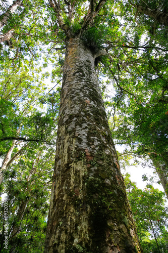 Very tall tree towering above thre land in New Zealnd.