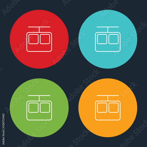 Very Useful Rope Way Trolley Line Icon On Four Color Round Options.