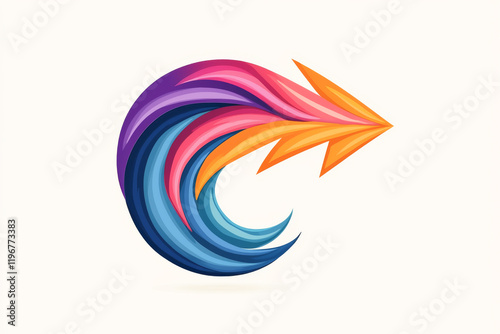 Vibrant abstract arrow design symbolizing progress and movement with colorful swirls.