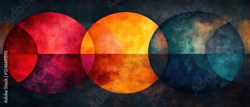 Vibrant Abstract Art Background with Colorful Circles and Soft Edges in Blue Yellow Red Purple on Light Beige or White