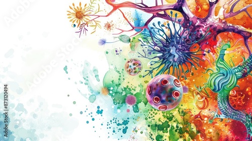 Vibrant abstract art depicting colorful neural networks and organic shapes blending beautifully in a splash of creativity.
