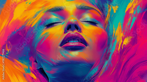 Vibrant abstract art portrait of a woman with colorful swirling strokes, striking modern artistic expression and bold vivid tones