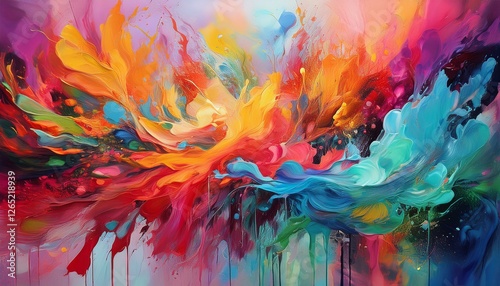 vibrant abstract art with colorful sponge on canvas featuring dynamic paint splashes and textures