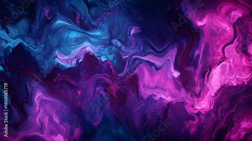 Vibrant, abstract artwork features a mesmerizing blend of deep blues, purples, and pinks, showcasing dynamic, flowing patterns.