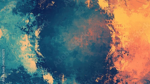 Vibrant Abstract Artwork with Swirling Blue, Orange, and Yellow Hues and a Textured Surface