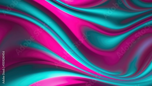Vibrant abstract background features smooth flowing waves in shades of pink and turquoise, perfect for modern design or digital art projects