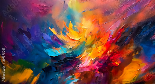 Vibrant abstract background featuring a dynamic burst of color with expressive brushstrokes, creating an energetic and artistic painting.