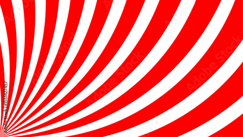 Vibrant abstract background featuring dynamic red and white spiral stripes radiating from the lower left corner. Eye-catching optical pattern with energetic motion and strong visual impact.
