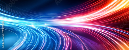 Vibrant abstract background with flowing red and blue light trails, creating dynamic and energetic atmosphere. Perfect for technology and modern design themes