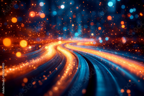 Vibrant abstract background with glowing lines and bokeh lights
