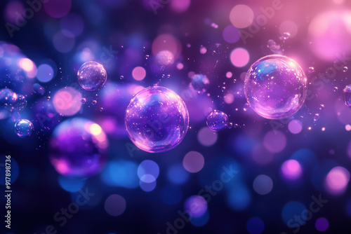 Vibrant abstract background with glowing purple bubbles and bokeh lights, creating a dreamy and magical atmosphere.